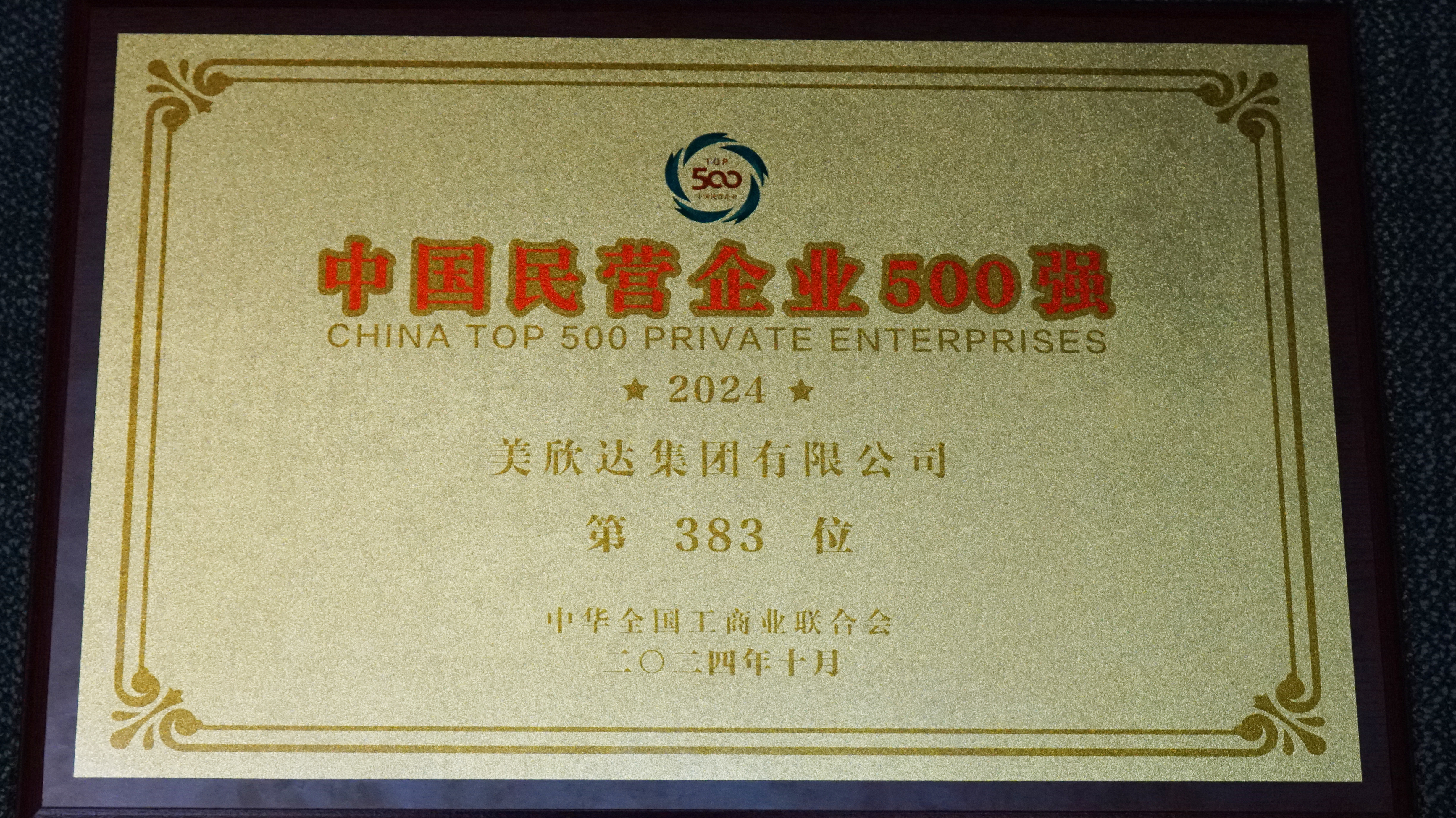 10月12日,美欣達集團位列“中國民營企業500強”榜單第383位(較上年提升17位);“中國制造業民營企業500強”榜單第258位(較上年提升1位)。